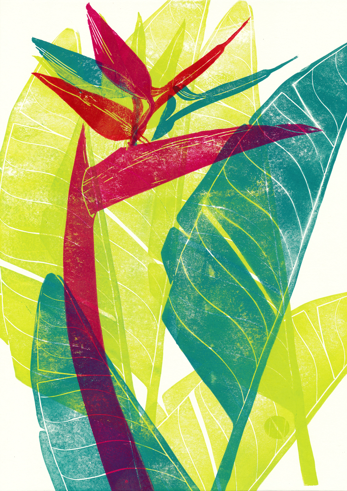 Technik: vielfarbiger Stempeldruck