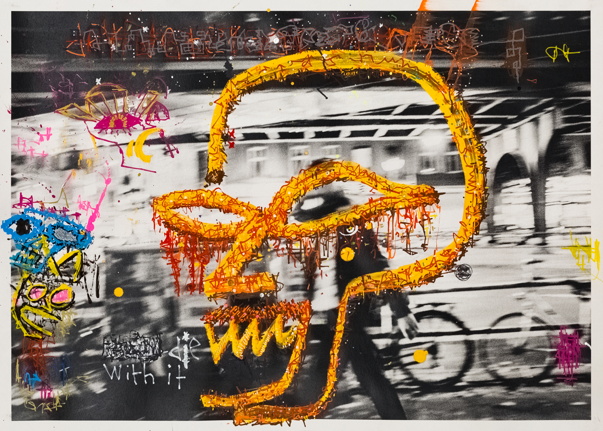 Technik: Zeichnung auf Fotoprint im Objektrahmen