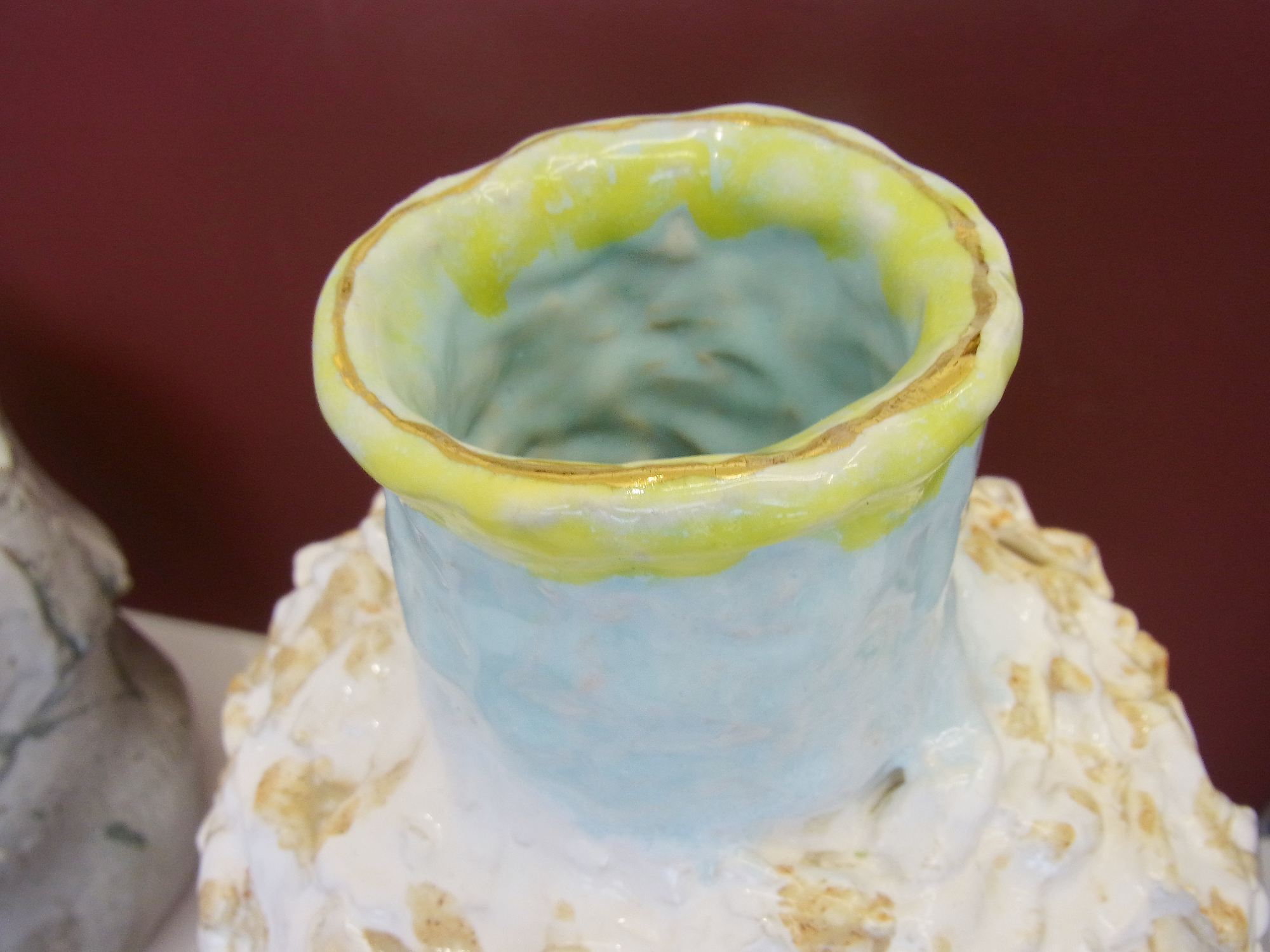 die Künstlerin den Objekten in mehreren Brennvorgängen Schicht um