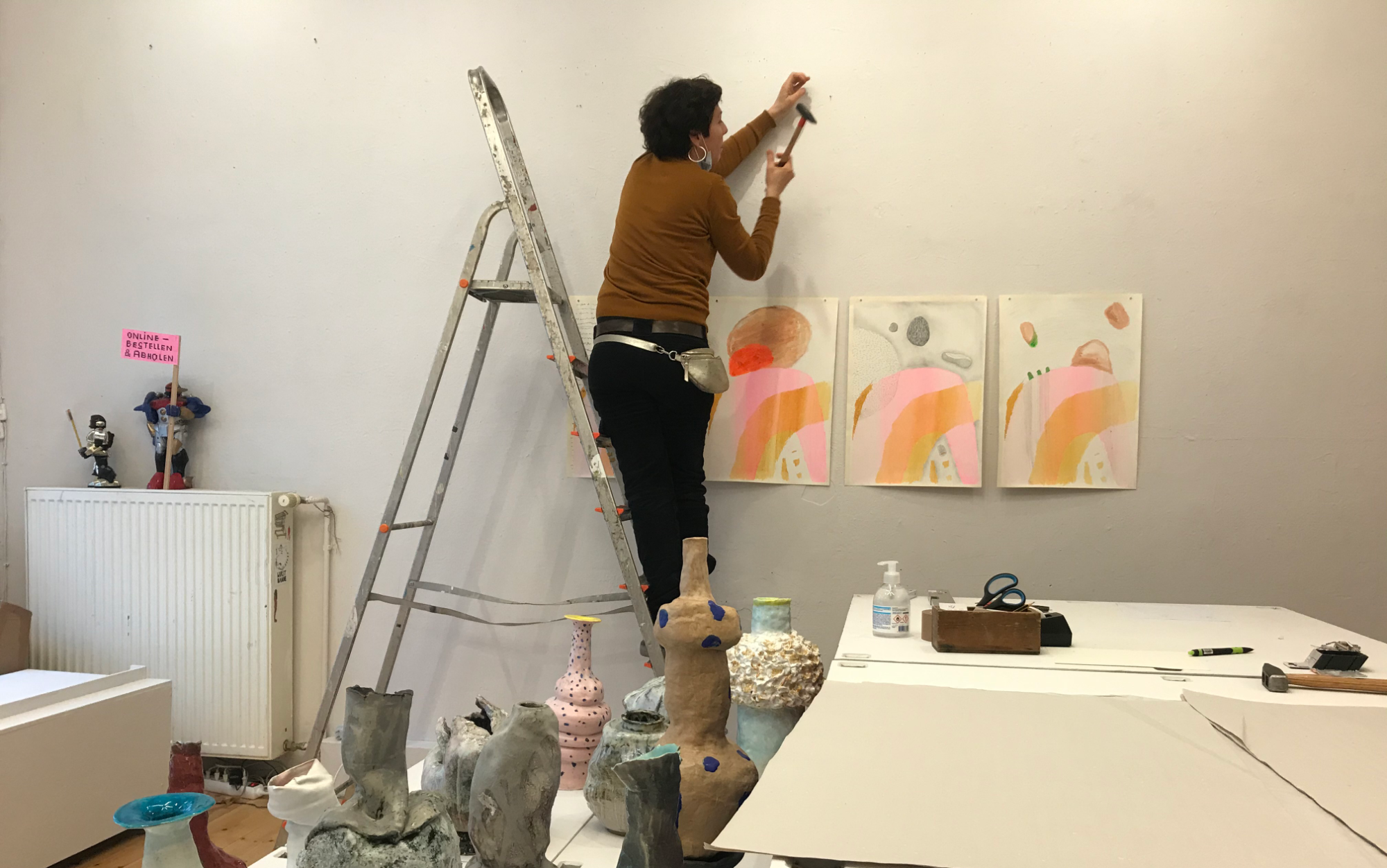 Keramiken von Olivia Pils. In der Ausstellung werden Serie und Original