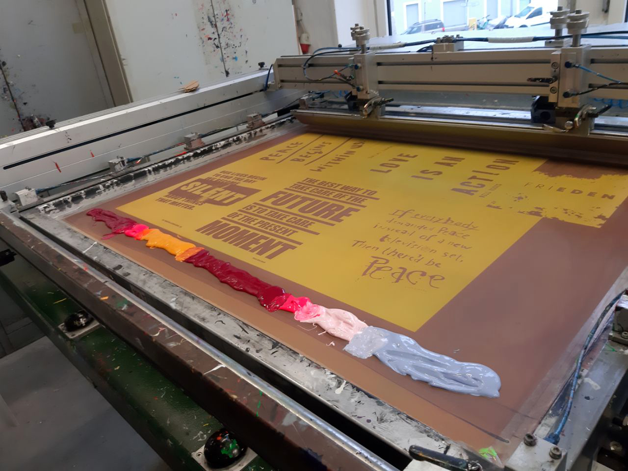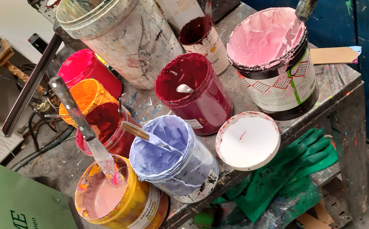 erarbeitete Entwürfe, von denen fünf diese Woche im Siebdruck umgesetzt