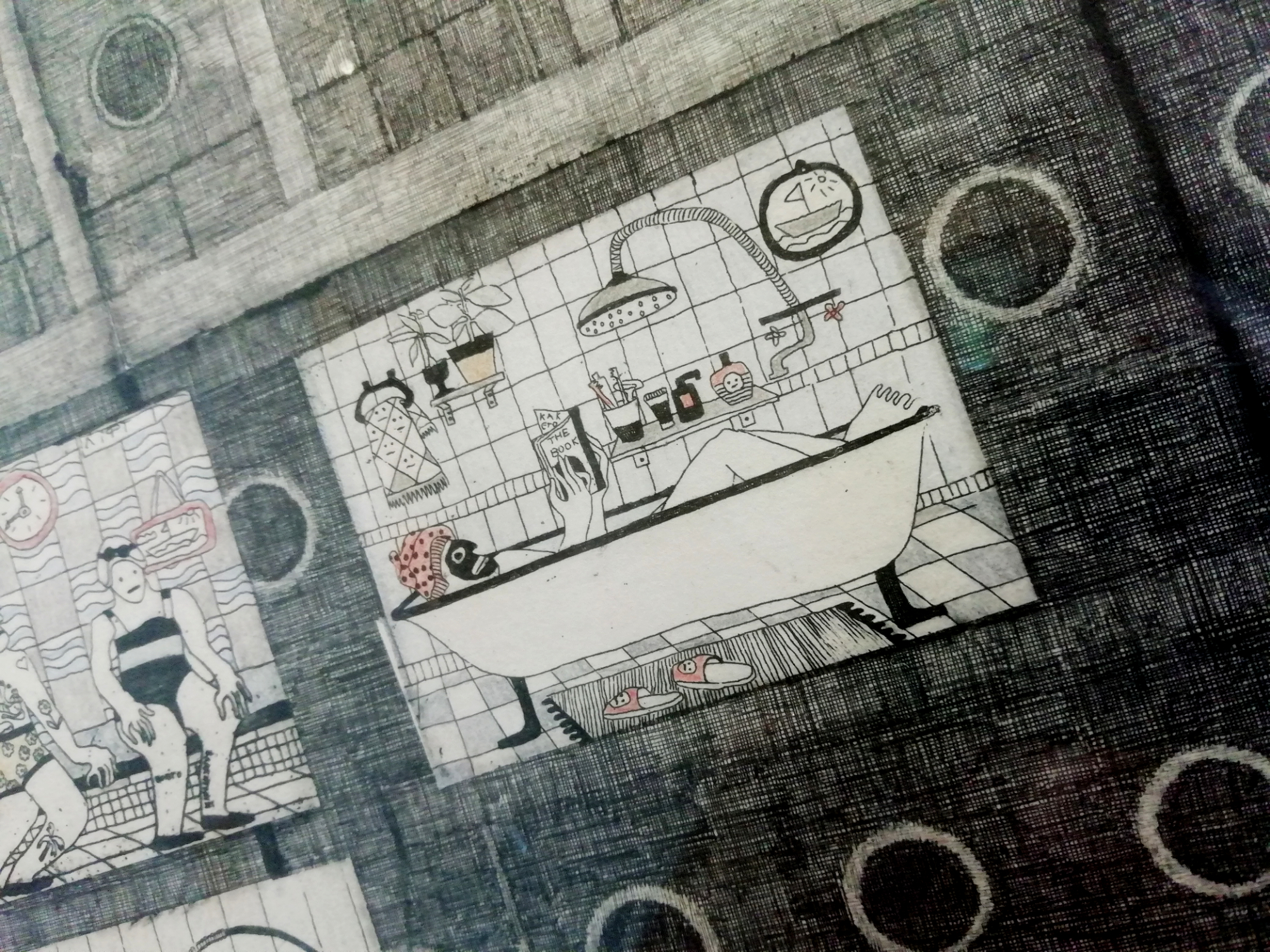 darunter Radierung, Mosaik, Textilien und Installationen. Ein