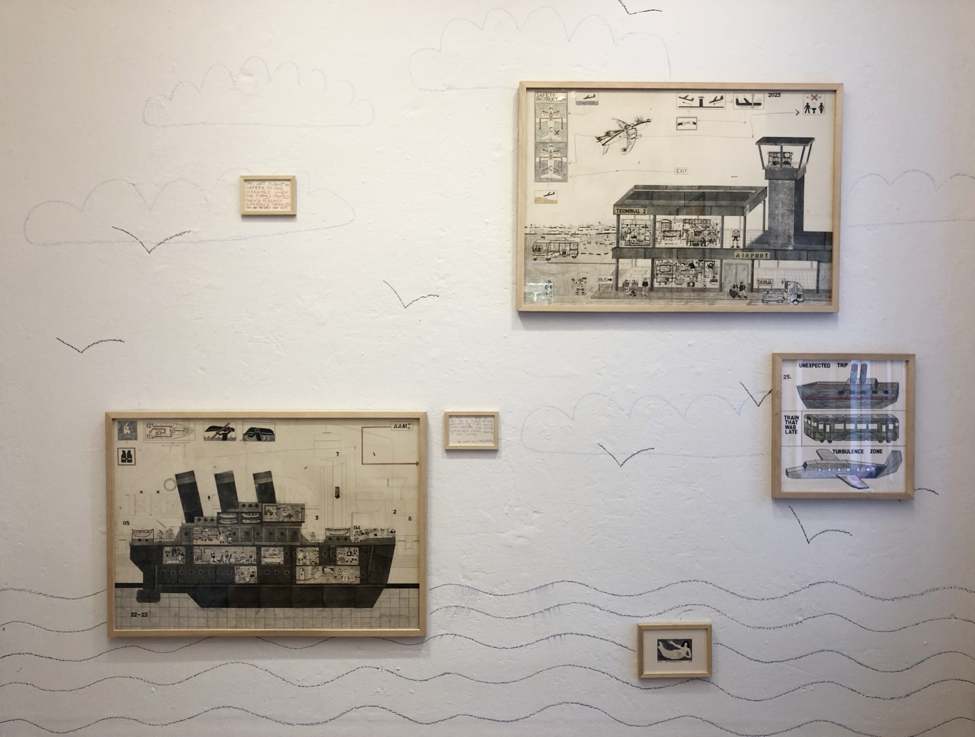 ship promising escape from the chaos, a burning plane that never really