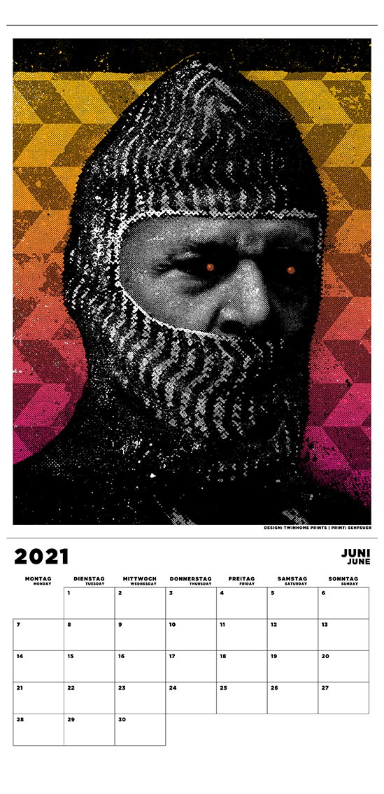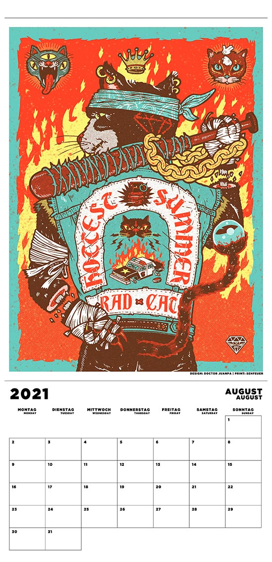 Jeden Monat gibt es eine andere Illustration von einem unserer 12 Gig-Poster-Künstler. Von Hand gesiebdruckt in der Werkstatt von Sehfeuer in Berlin. Alle Motive sind so angelegt, dass das Kalendarium abgeschnitten werden kann und sich dann ein Kunstdruck mit den Maßen von 30×40 cm ergibt. Ideal für Bilderrahmen!