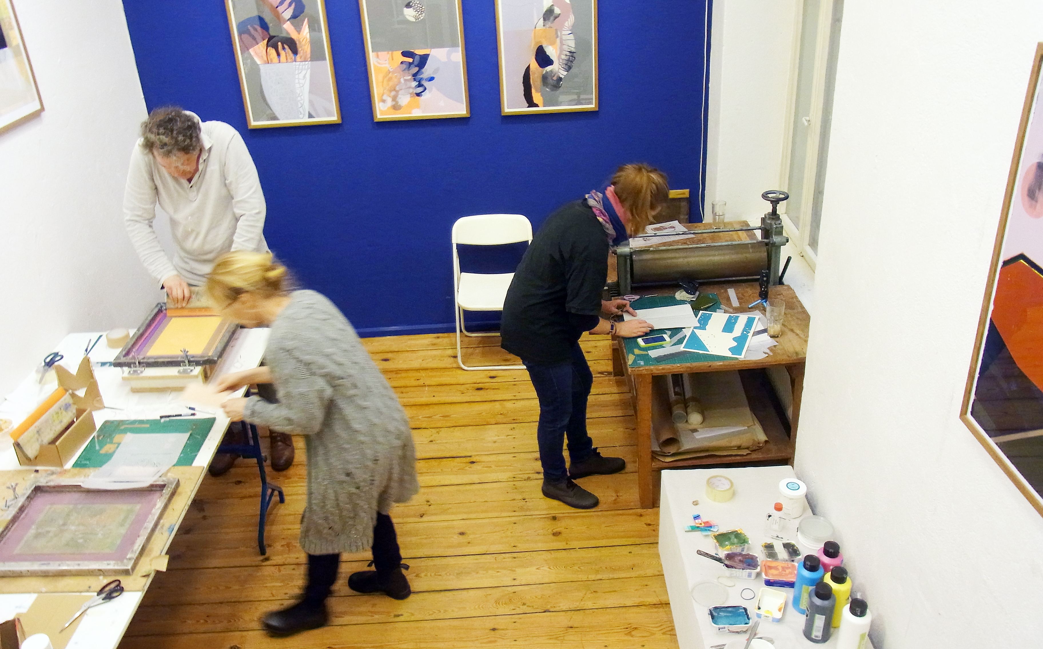 Ganz wunderbare Bilder entstehen während der Siebdruck-Workshops, die wir in regelmäßigen Abständen im Supalife Kiosk veranstalten. Der Siebdruck ist ein Druckverfahren, bei dem die Druckfarbe mit einem Gummirakel durch ein feinmaschiges Gewebe hindurch auf das zu bedruckende Papier gedruckt wird. An den Stellen des Gewebes, wo dem Druckbild entsprechend keine Farbe gedruckt werden soll, werden die Maschenöffnungen des Gewebes durch eine Schablone farbundurchlässig gemacht. In diesem Workshop wird vermittelt, wie mit Hilfe von Papierschablonen einfache Siebdrucke in einer oder mehreren Farben hergestellt werden. Gedruckt wird mit Siebdruckfarben auf Papier (max. 25cm x 35cm). Nach einer Einführung von ca. 1,5 Stunden haben die Teilnehmer*innen genügend Zeit, ihre eigenen Ideen in der Technik des Siebdrucks ein- oder mehrfarbig umzusetzen. Die entstandenen Drucke können die Teilnehmer*innen mit nach Hause nehmen. Bitte zum Workshop mitbringen: ein altes Hemd zum Überziehen, einen Föhn, um die Bilder zu trocknen, und wenn möglich eine kleine Nagelschere, um Details auszuschneiden